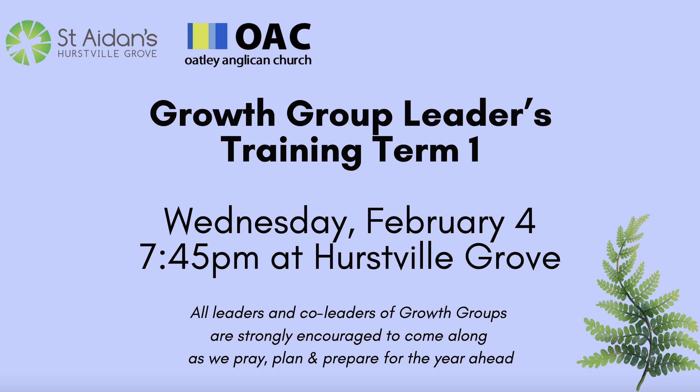 We’re kicking off 2026 with a training & planning session for all our growth group leaders. Please contact our Growth Group Coordinator if you have any questions.