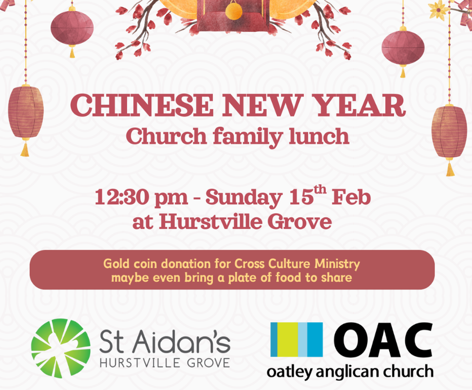 Join us as we celebrate Chinese New Year with a family lunch after 10am church. All welcome!